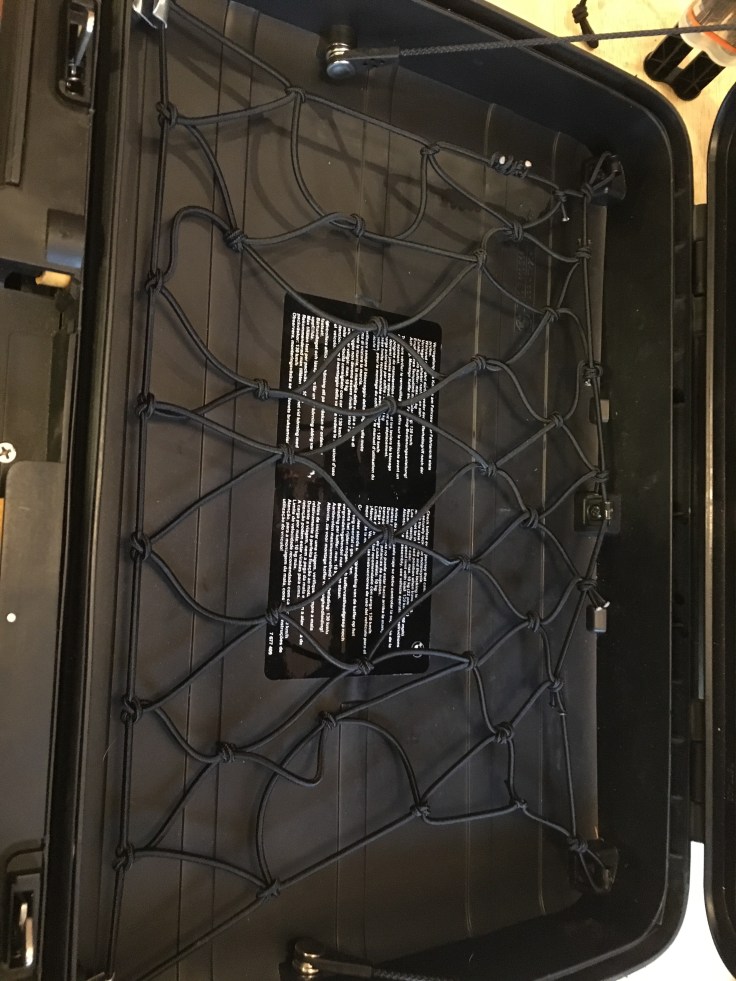 Prepping! Decided to make my own custom sized cargo nets for my BMW Vario cases for the upcoming trip to Alaska. Share this: Click to share on X (Opens in new window) X Click to share on Facebook (Opens in new window) Facebook Like Loading... Leave a comment Cancel reply Δ