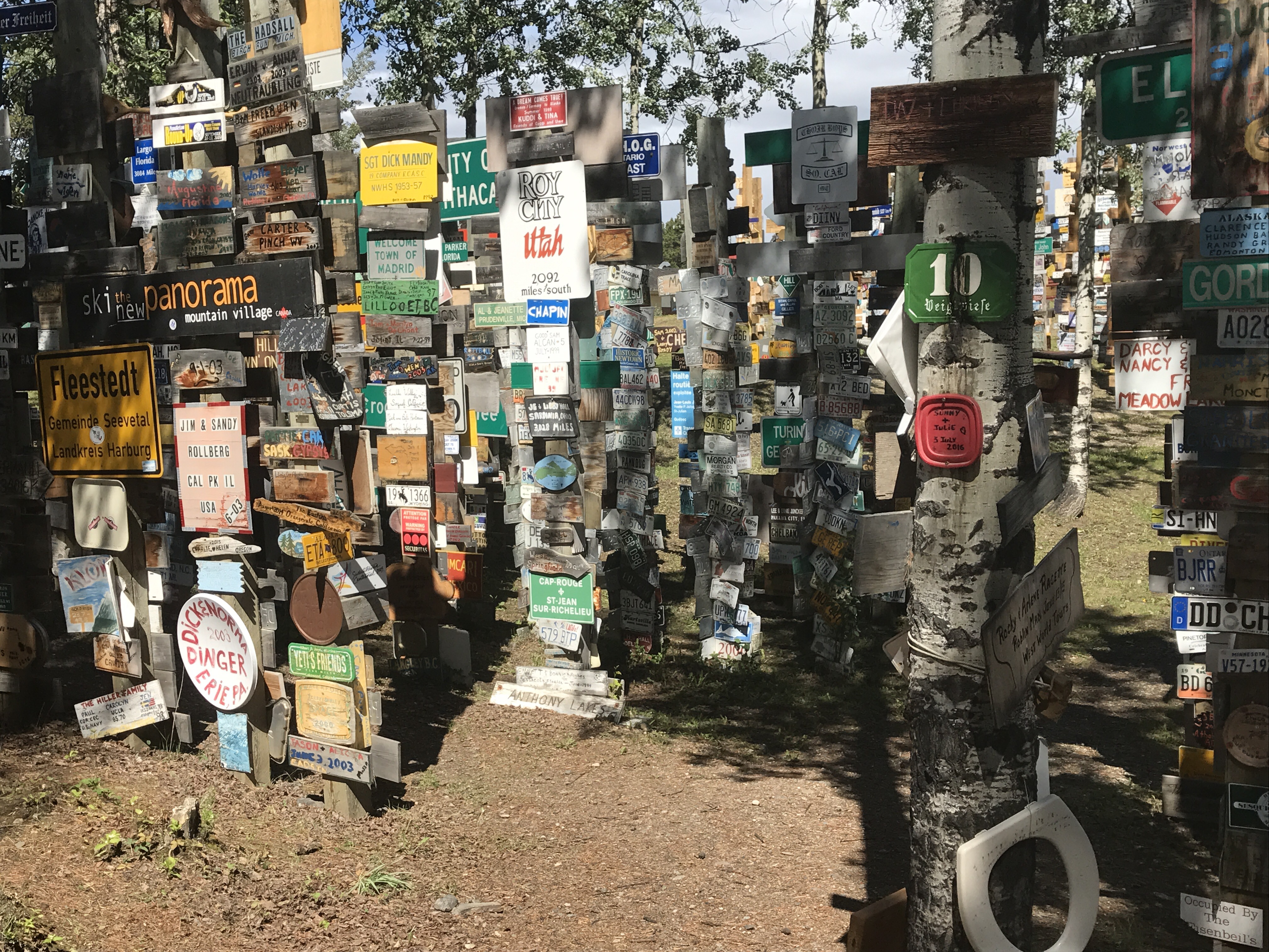 In 1942, a “home sick soldier” from Danville, IL added a hometown sign to an army mileage post. Carl Lindsey, the soldier, started something very cool for travelers on the Alcan.